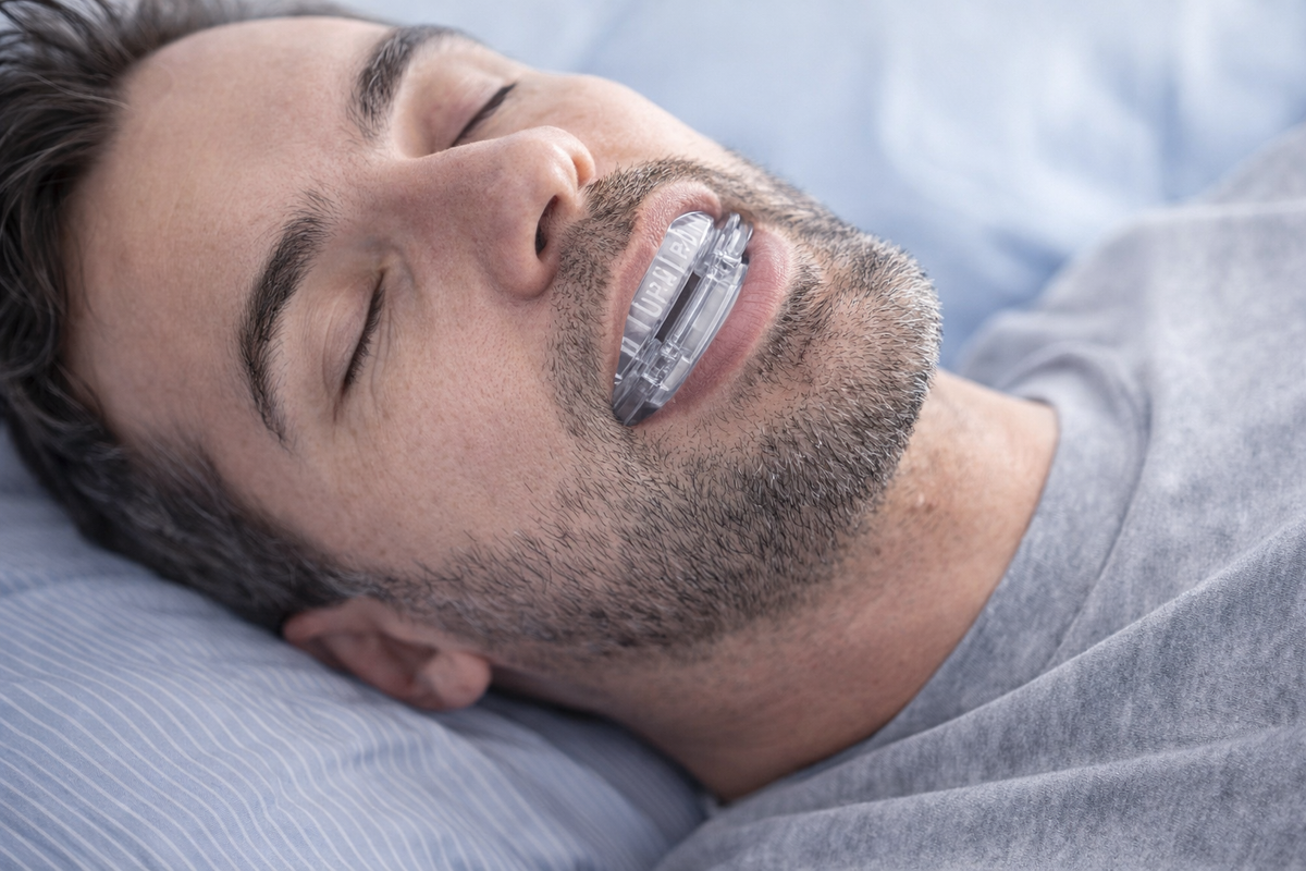 Sleep: Once comfortable, lie down and relax. The mouthguard works by gently repositioning your jaw to keep airways open throughout the night.